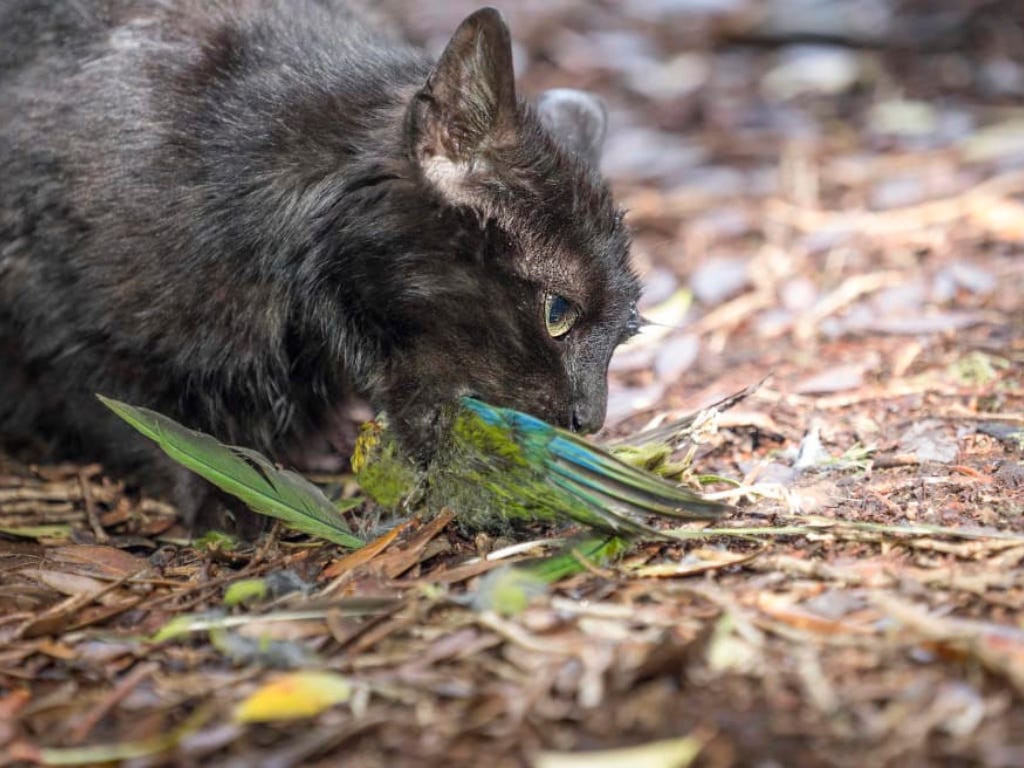 And in many places Australia is making that choice for wildlife. Between 2015 and 2018, Australia killed 844,000 feral cats with poison and traps. A 2024 Guardian article describes a shooting campaign in the national parks of New South Wales as an attempt to slow the bleeding from the estimated 5 million deaths per day of native birds, mammals, reptiles, and frogs.