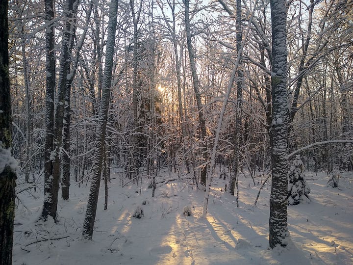 I love how the dance of life and death play out in a winter forest, how the elegant dark bones of trees and shrubs shape the northern story of survival, rising out of the white starkness to feed the birds and acknowledge the Sun. Their buds, in place since the fall, were built on last summer’s light and are dedicated to the light that’s coming. That’s a message of endurance we would all do well to heed.