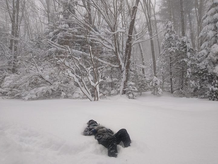 This water that falls like feathers reorients the world, waits with us here above ground in a cold bright stillness that distills complexity into a map of silence. That silence around us provides fellowship for the silence within us.